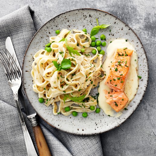 Grøntsagspasta med broccoli, ærter, svampe og flødesovs
