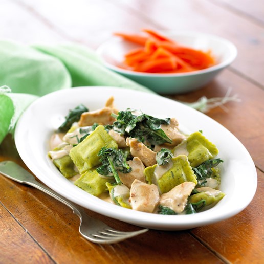Ravioli og kylling i spinatsauce