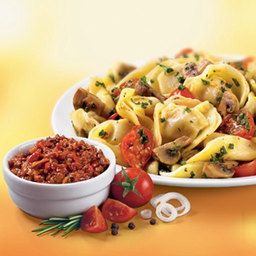 Steg champignonerne i olie i en gryde i ca. 5 min. Tilsæt cherrytomater og hvidløg og svits i ca. 2 min. Tomaterne skal ikke koge ud. Tilsæt persille, salt og peber. Kog imens pastaen efter anvisningen. Tag 1-2 dl kogevand fra og hæld pastaen til afdrypning i en sigte. Vend pastavand og de varme tortellinier i champignon-tomatblandingen. Server straks.